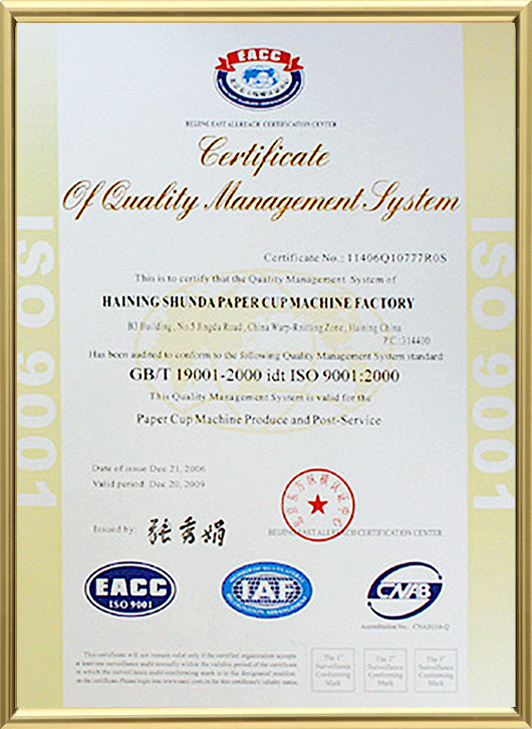 Haining Shund 종이 컵 기계 얼굴 Tory